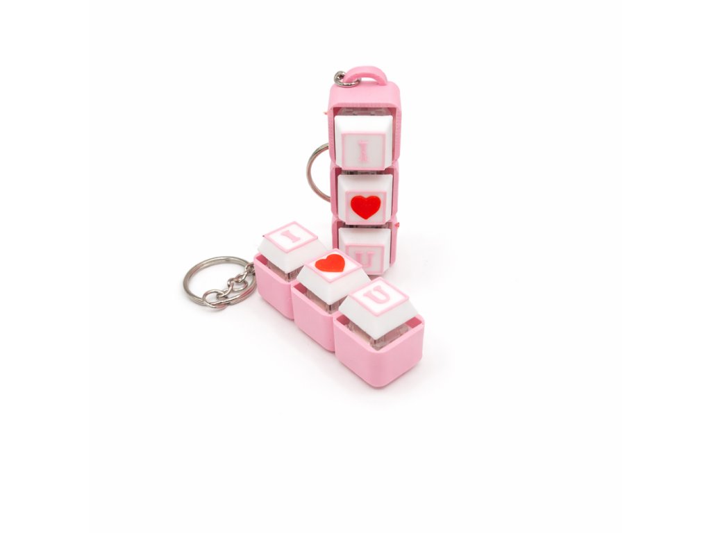 Někdy stačí tři kliky a je jasno. I ❤️ U je tří-tlačítková klikací klíčenka, která kombinuje mechanický fidget zážitek s jednoduchým, ale výmluvným valentýnským sdělením.